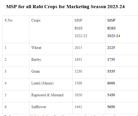 Cabinet approves Minimum Support Prices for all Rabi Crops for Marketing Season 2023-24