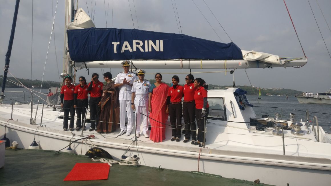 • The all-women crew of Tarini was received at the jetty by Raksha Mantri Smt. Nirmala Sitharaman, who had also flagged them off on September 10, 2017.
